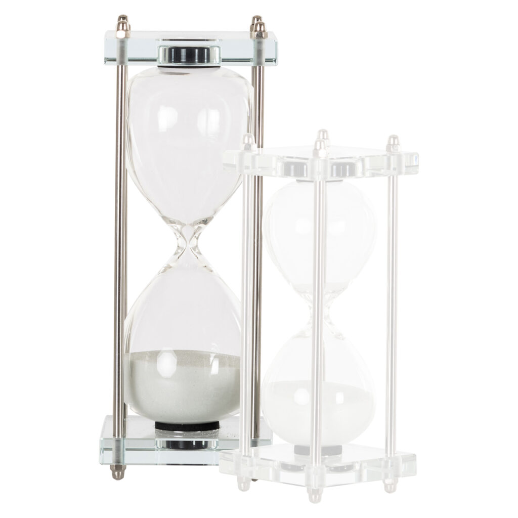 De zandloper Gigi is functioneel en goed ontworpen. De zilveren details voegen een vleugje elegantie toe aan het algehele ontwerp. Het dient als een herinnering aan het verstrijken van de tijd wanneer het zand door het glas beweegt. Het is verkrijgbaar in twee maten, klein en groot, en kan worden geplaatst in verschillende ruimtes zoals een kantoor of woonkamer. Het is zowel praktisch als decoratief.