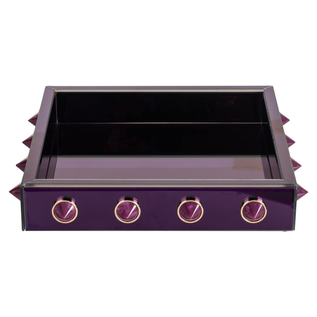 Dienblad Jinx in paars is een luxueus en opvallend accessoire dat elke ruimte een verfijnde uitstraling geeft. De diepe paarse kleur, in combinatie met de gouden accenten aan de zijkanten, zorgt voor een moderne en gedurfde uitstraling. De geometrische details voegen een eigentijdse touch toe, waardoor dit dienblad niet alleen functioneel is, maar ook een decoratief statement maakt. Of het nu wordt gebruikt om drankjes te serveren of om accessoires te presenteren, met dienblad Jinx haal je een stijlvol en elegant item in huis dat perfect is voor moderne interieurs.