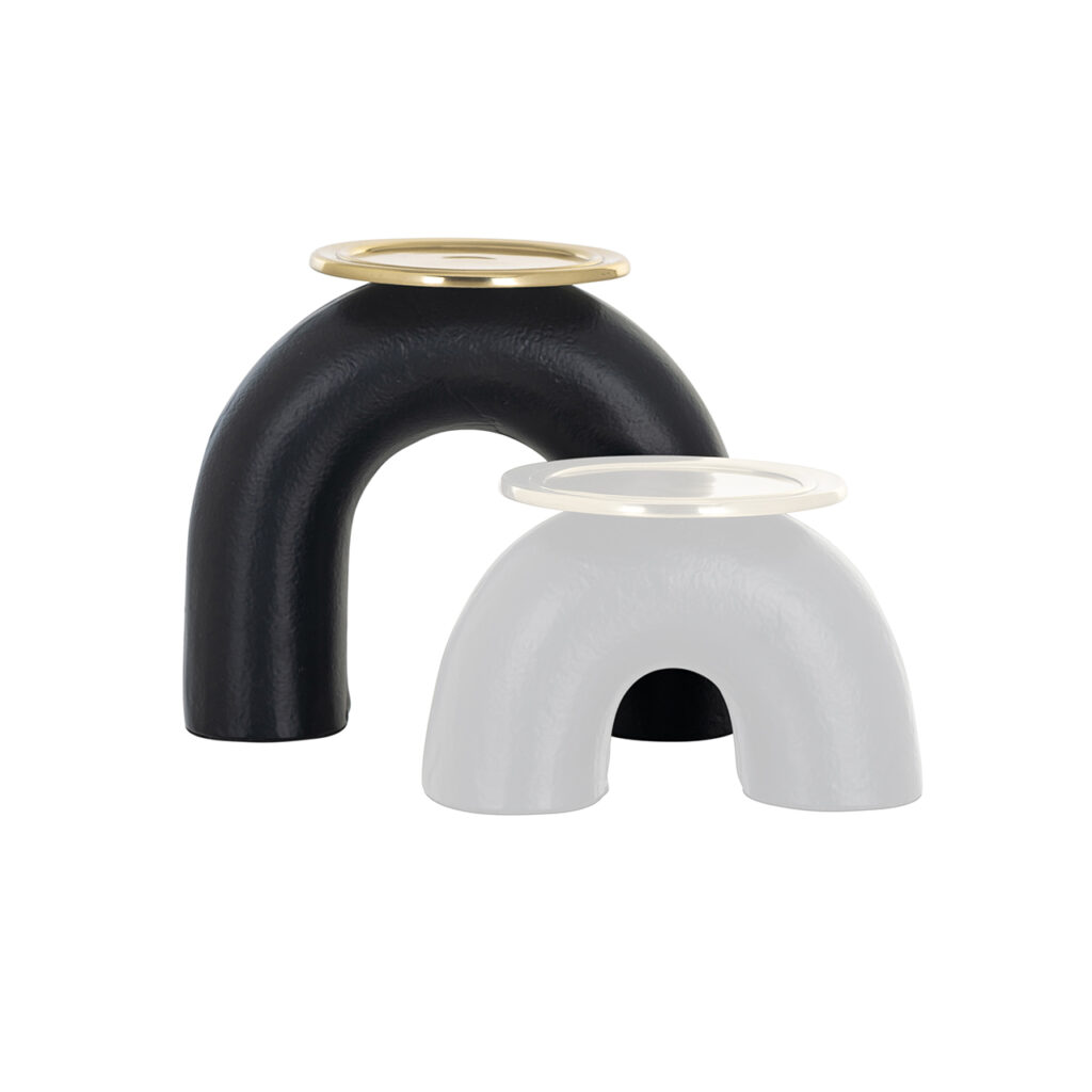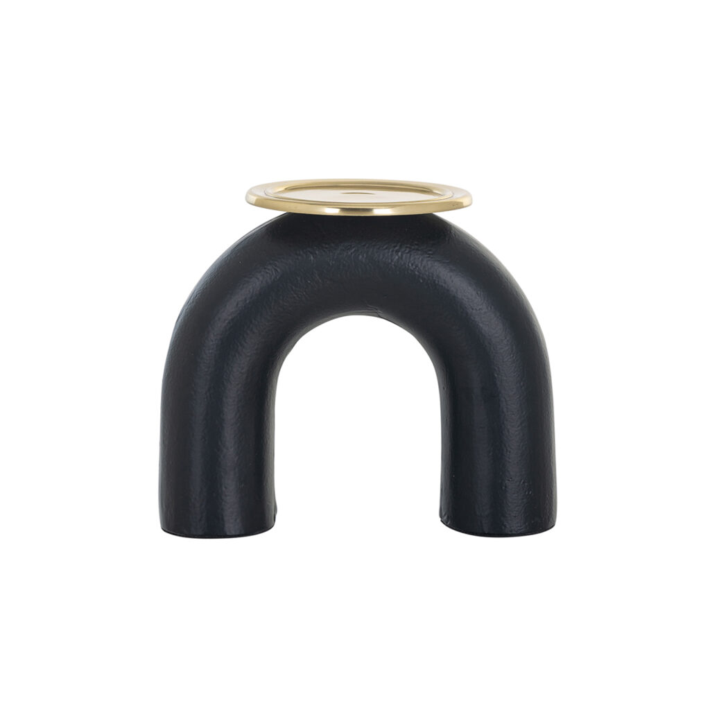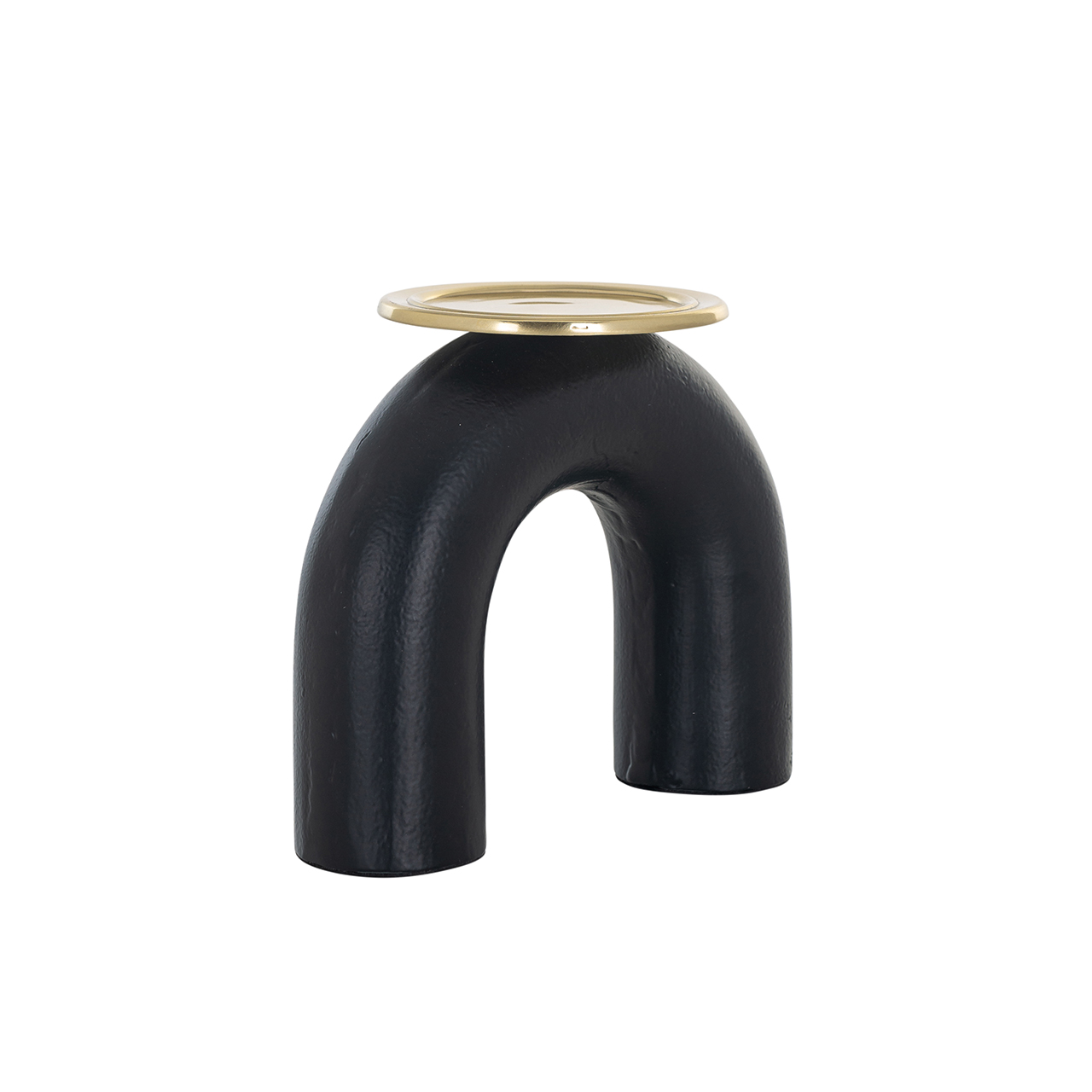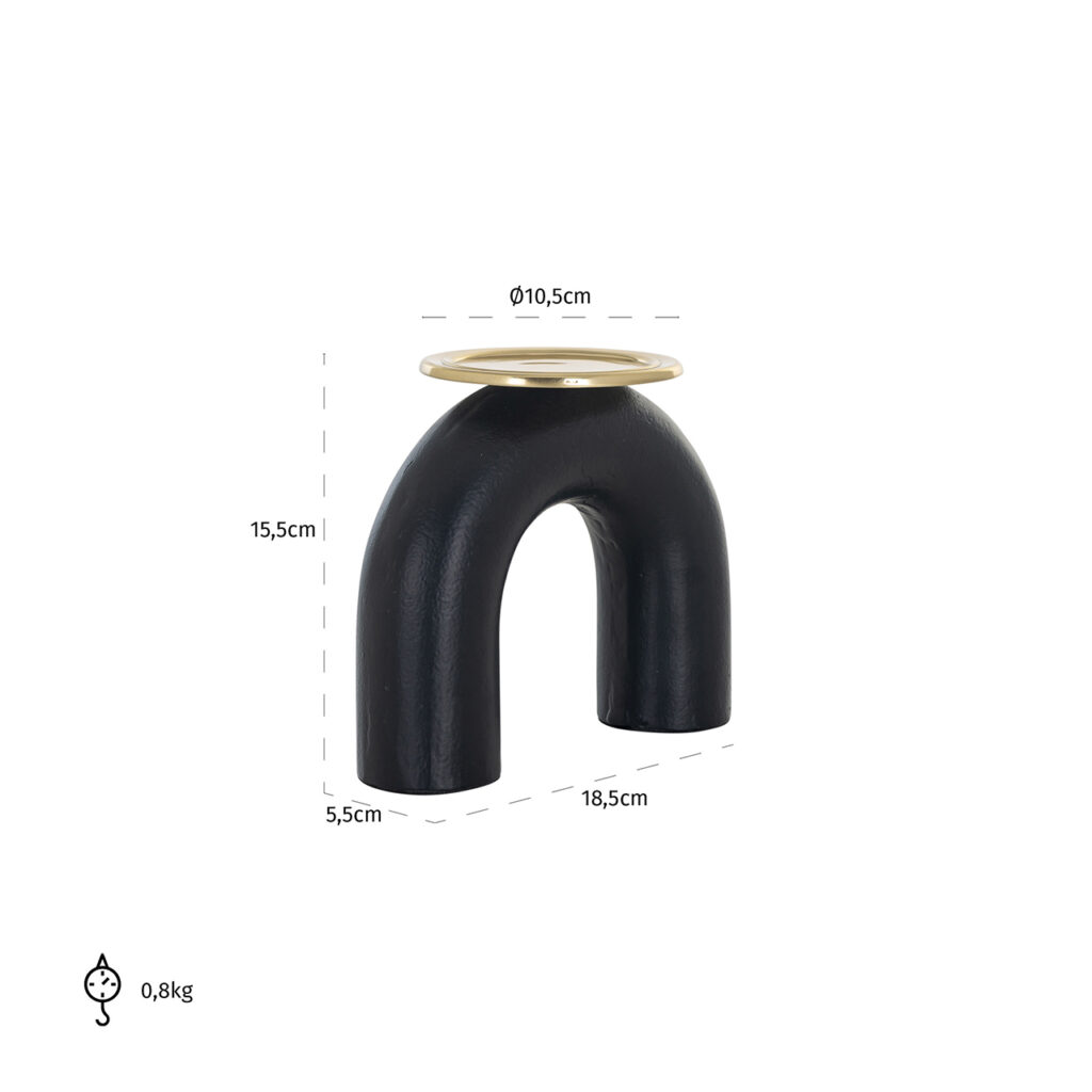 Deze gezellige kandelaar is een echte eyecatcher voor in het huis of in de tuin. De kandelaar brengt niet alleen sfeer, maar ook warmte aan tafel. Het zwarte aluminium van de kandelaar is siervol afgewerkt met gouden decoratie. Ook leuk om weg te geven als cadeau! Ook beschikbaar in het klein.