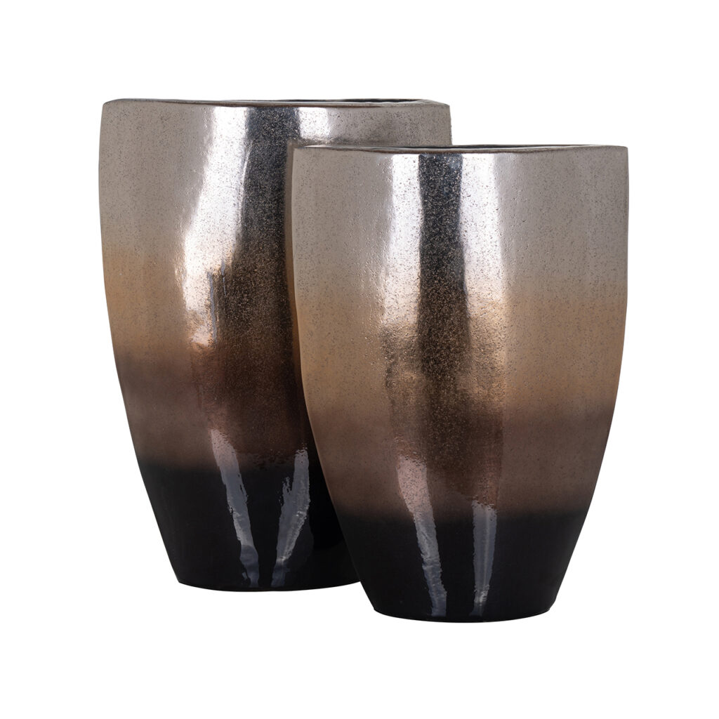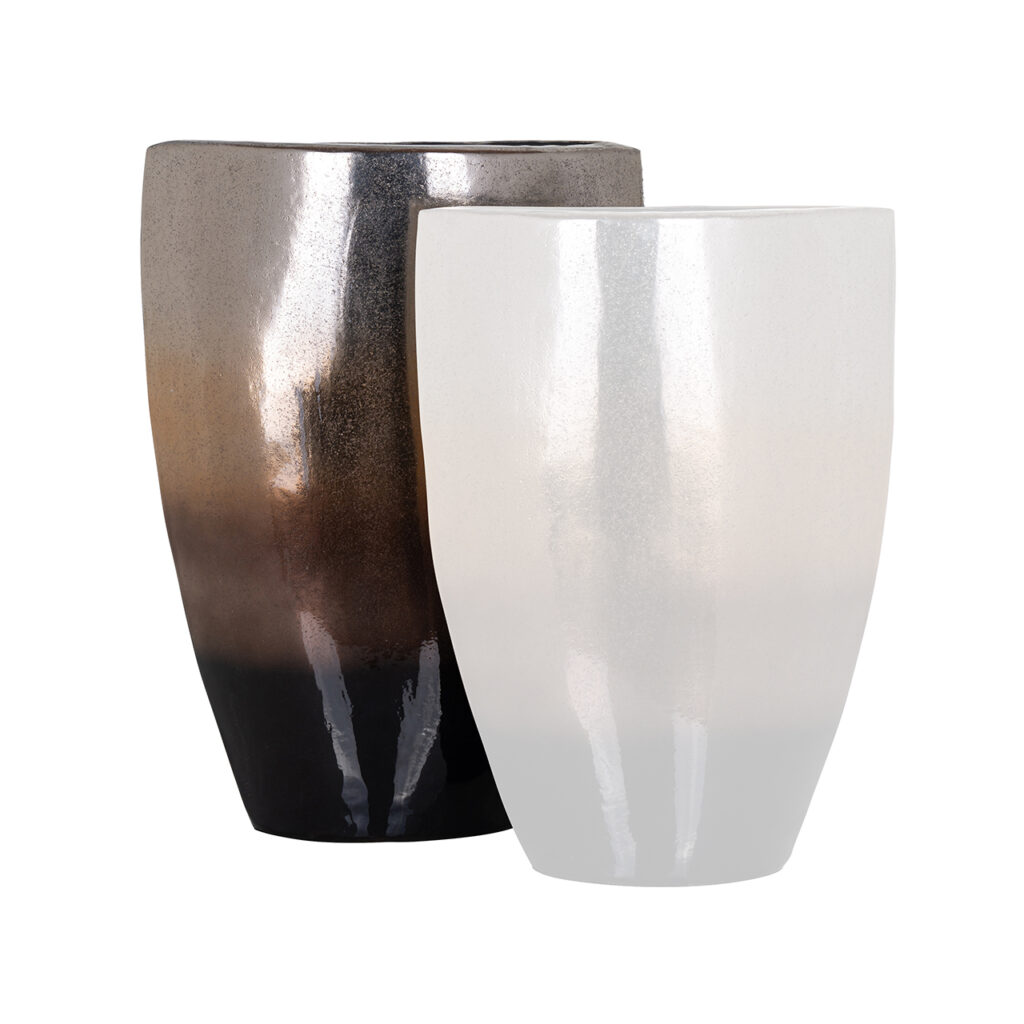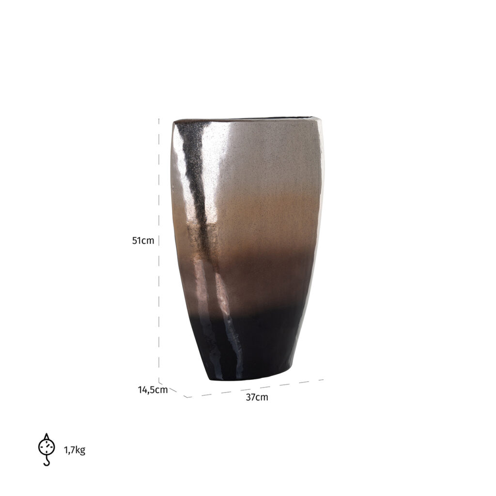 Onze Iris Vaas is een decoratief accessoire dat de decoratie van jouw huis met elegantie en verfijning zal voltooien. Het is gemaakt van hoogwaardig aluminium, een zeer resistent materiaal. Een eenvoudig ontwerp van geometrische vormen die je als middelpunt kunt gebruiken, als decoratieve aanvulling voor op planken of om het af te maken met bloemen. Combineer ze met de rest van de vazen die we bij Richmond voor jou hebben en creëer een unieke samenstelling. Ook beschikbaar in het klein.