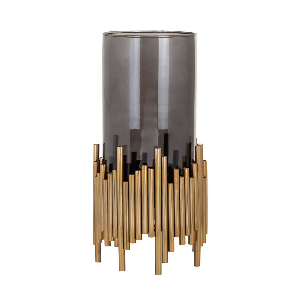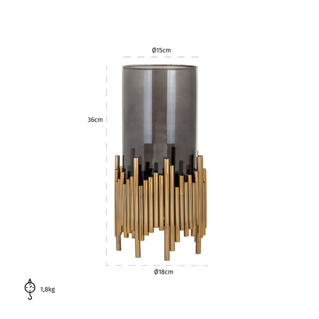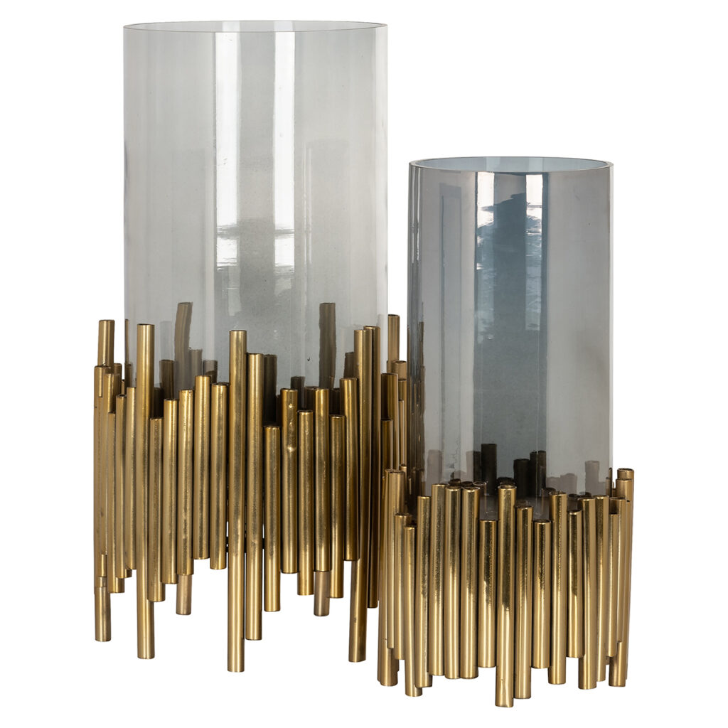 Ongetwijfeld een van de trouwe vertegenwoordigers van de vintage stijl is de Lennox windlicht. Dit is een accessoire dat niet onopgemerkt zal blijven vanwege zijn originele vorm. Het is gemaakt van roestvrij staal en glas en is hierdoor een compact en duurzaam product. De gouden afwerking zal de ruimte waarin je hem wilt plaatsen vullen met elegantie en verfijning. Aarzel niet langer en koop deze charmante kandelaar om de decoratie van jouw huis of bedrijf compleet te maken met een vleugje persoonlijkheid en stijl. Ook verkrijgbaar in het klein.