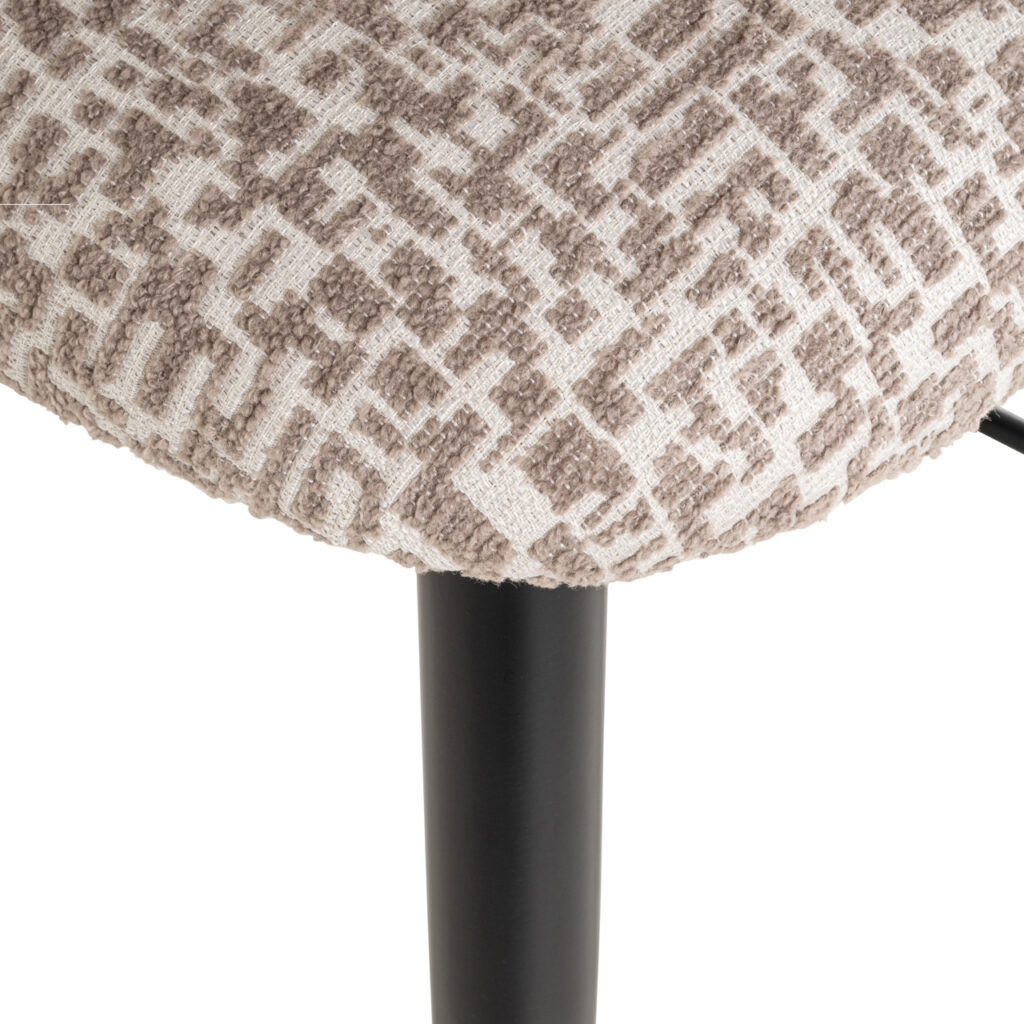 Barkruk Dantes combineert een zwart metalen frame met een open rugleuning in natural geo-stof. Brandvertragend en vol subtiel karakter. Ook verkrijgbaar in hazel.