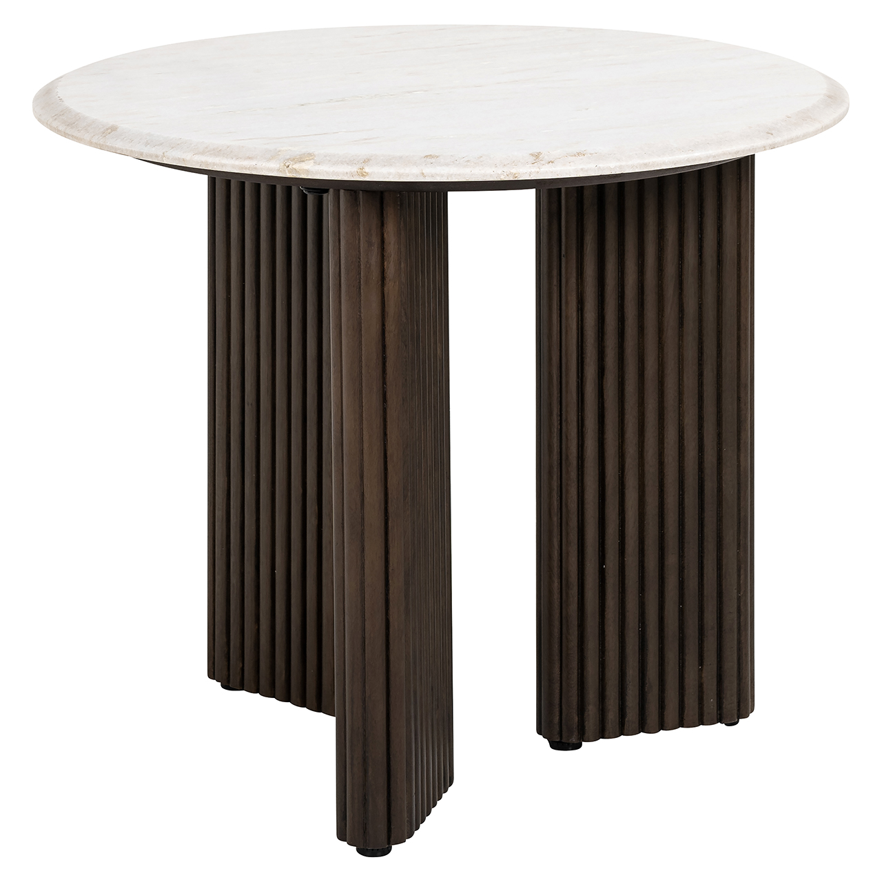 De Bijzettafel Mayfield 55Ø is een perfecte mix van elegantie en functionaliteit. Het marmeren blad straalt een luxe en tijdloze charme uit, terwijl de voet van mangohout een warme en natuurlijke toets geeft aan het geheel.
