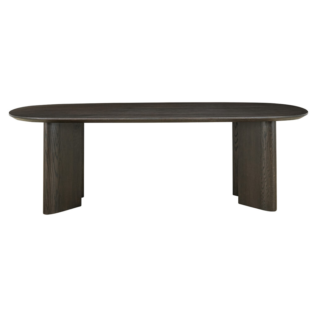 De Durban eettafel in de kleur bruin is vervaardigd uit eikenfineer, eikenhout en multiplex, wat zorgt voor een stevige en duurzame constructie. De tafel heeft een elegant ovaal tafelblad dat een tijdloze en moderne uitstraling biedt. De warme bruine kleur benadrukt de natuurlijke houtnerf, waardoor de tafel een verfijnde en stijlvolle toevoeging is aan elke eetruimte. De Durban eettafel is beschikbaar in drie maten: 220 cm, 250 cm en 300 cm, waardoor hij geschikt is voor verschillende eetruimtes en gezelschappen. Deze tafel combineert functionaliteit met een strak en eigentijds design.