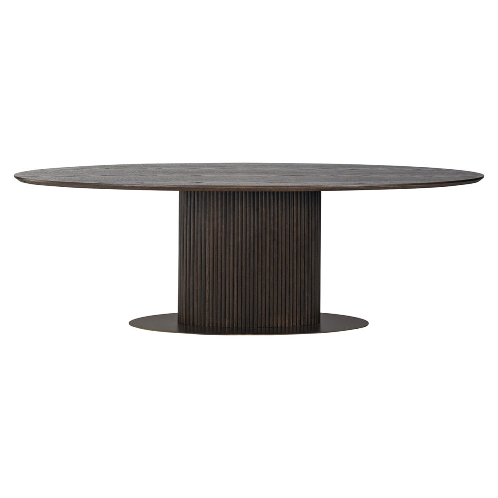 De eettafel Luxor, gemaakt van hoogwaardig eiken, is verkrijgbaar in twee maten: 235 en 300 cm. Met zijn elegante ovale vorm brengt deze tafel stijl en warmte in elke eetkamer.